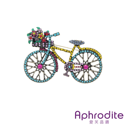 閃耀彩鑽鑲嵌花籃自行車造型胸針 2色任選*愛芙晶鑽* |