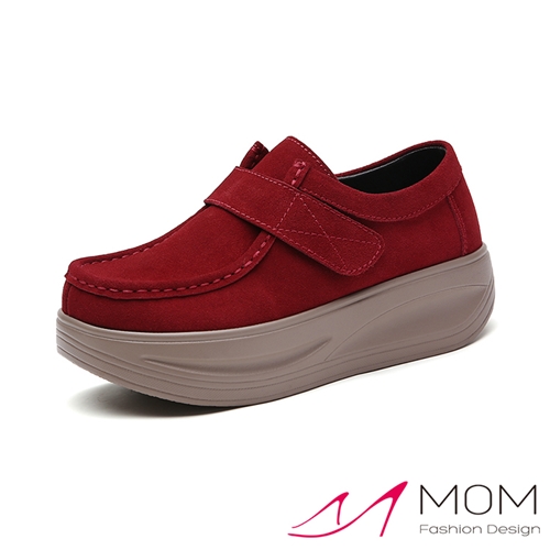 舒適輕量寬楦便利魔鬼粘百搭厚底美腿搖搖鞋 紅*MOM* |