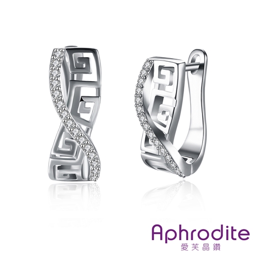 微鑲美鑽縷空長城紋設計時尚耳扣 耳環 白金色*愛芙晶鑽* |
