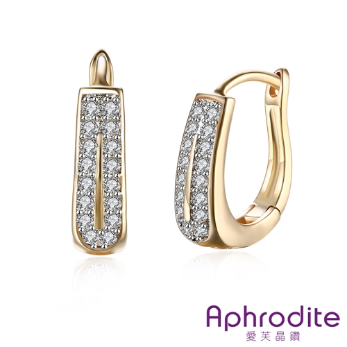 雙排美鑽鑲嵌浪漫造型耳扣 耳環 香檳金色*愛芙晶鑽* |
