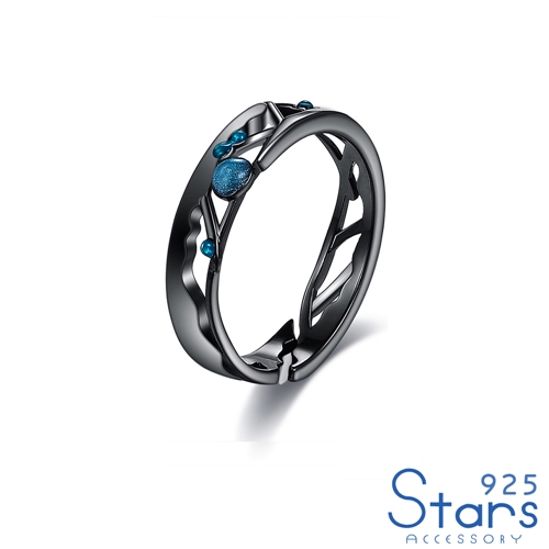 純銀925嗆黑個性縷空圖騰鑲石情侶對戒 開口戒*925 STARS* |