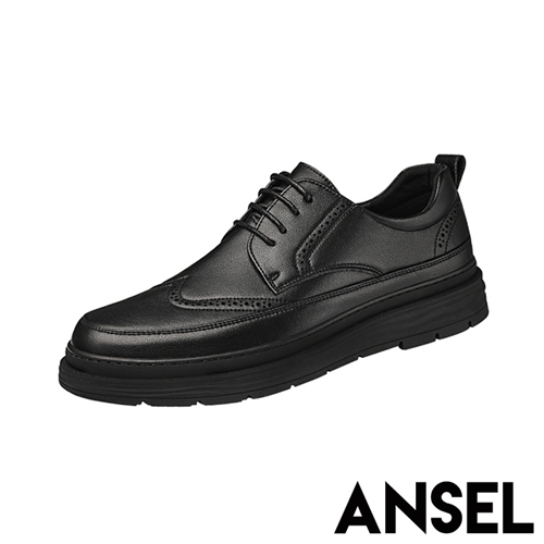 真皮復古布洛克雕花設計繫帶休閒鞋 黑*ANSEL* |