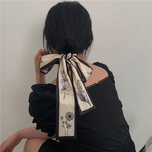 [快速出貨] 法式植物花卉圖樣緞面髮帶 髮繩 絲巾 領巾*INES* |