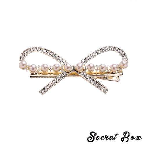 [快速出貨] 優雅閃耀美鑽珍珠蝴蝶結髮夾 2色任選*SECRET BOX* |