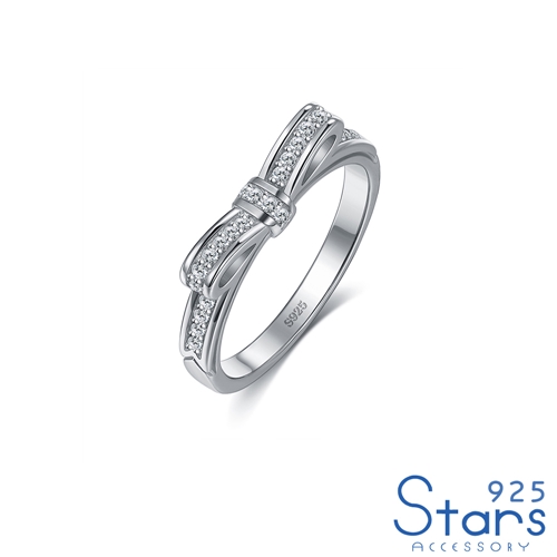 純銀925微鑲美鑽立體蝴蝶結造型戒指 2色任選*925 STARS* |