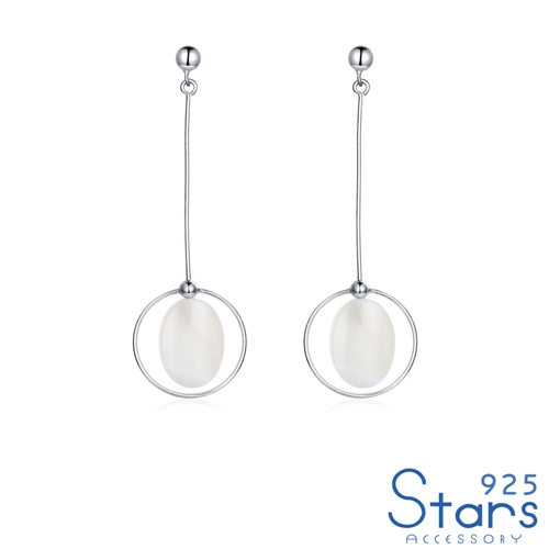 純銀925復古百搭貝殼圓片造型長耳環*925 STARS* |
