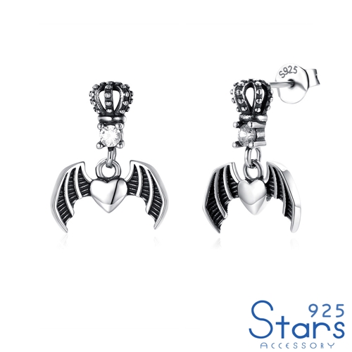 純銀925復古愛心蝙蝠翅膀美鑽鑲嵌造型耳釘 耳環*925 STARS* |