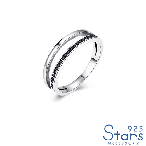 純銀925復古極簡單排鋯石鑲嵌戒指 黑鋯*925 STARS* |