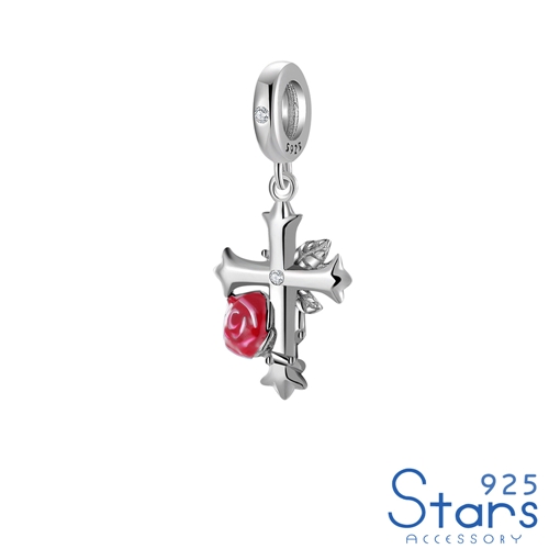 純銀925閃耀美鑽鑲嵌十字架玫瑰造型吊墜串珠*925 STARS* |