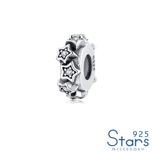 純銀925閃耀鋯石立體五角星星串珠 定位珠 隔間珠*925 STARS* |