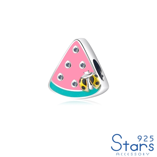 純銀925繽紛彩釉夏季甜品系列切片西瓜造型串珠*925 STARS* |