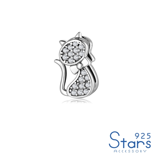 純銀925閃耀美鑽鑲嵌可愛小貓咪手錶鍊夾珠 串珠*925 STARS* |