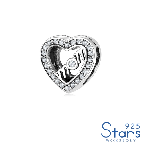 純銀925閃耀美鑽愛心MOM縷空手錶鍊夾珠 串珠*925 STARS* |