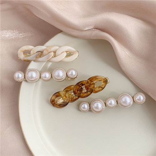 [快速出貨] 韓國設計氣質琥珀麻花珍珠髮夾2件組 3款任選*INES* |