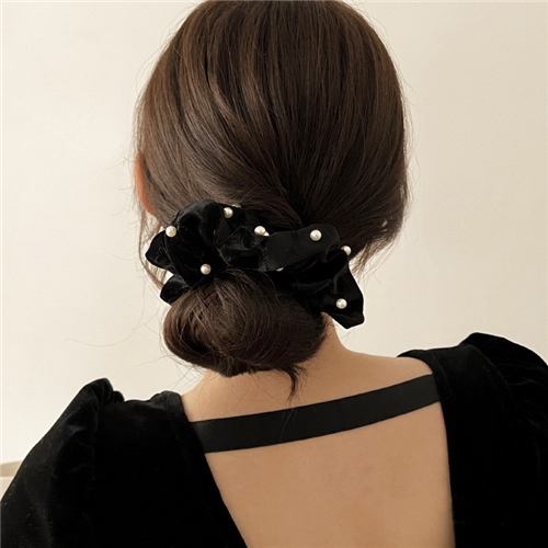 [快速出貨] 韓國設計法式古典絲絨珍珠大腸圈 髮圈*INES* |