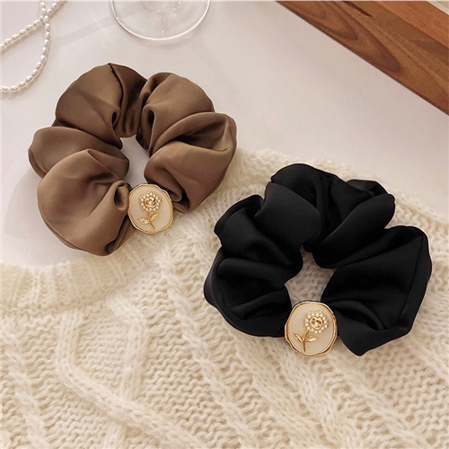 [快速出貨] 優雅氣質珍珠花朵釦造型大腸圈 髮圈 3色任選*INES* |