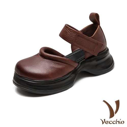 真皮頭層牛皮立體滾邊大圓頭厚底休閒涼鞋 棕*VECCHIO* |