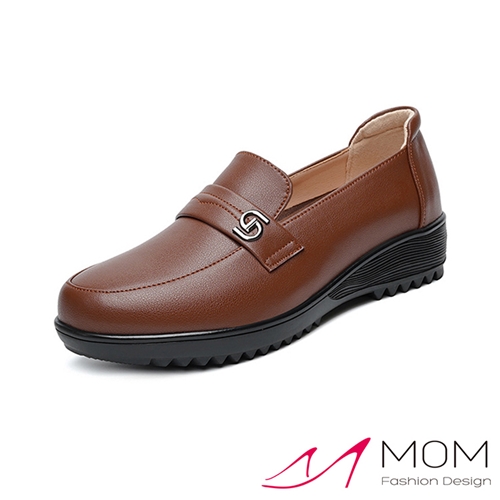 真皮典雅百搭金屬釦坡跟樂福鞋 棕*MOM* |