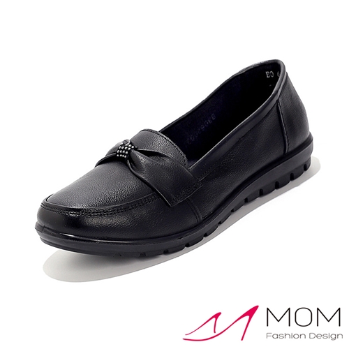 真皮典雅燙鑽蝴蝶結造型小圓頭樂福鞋 黑*MOM* |