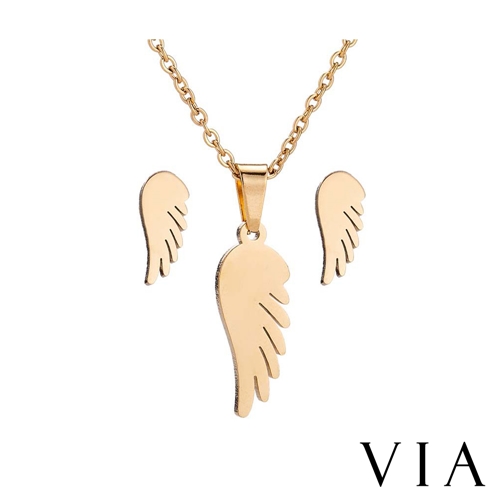 [快速出貨] 時尚系列 可愛天使翅膀白鋼耳釘項鍊套組 金色*VIA* |