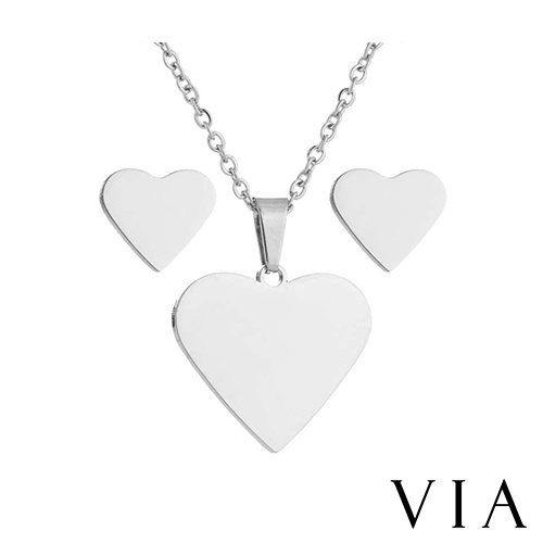 [快速出貨] 時尚系列 經典愛心造型白鋼耳釘項鍊套組 鋼色*VIA* |