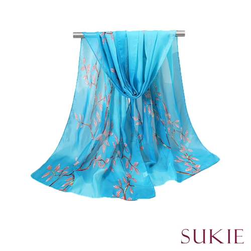 [快速出貨] 濃淡漸層花朵印花50X150雪紡紗圍巾 4色任選*Sukie* |