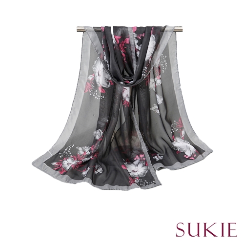 [快速出貨] 描畫寫意花朵印花50X150雪紡紗圍巾 4色任選*Sukie* |