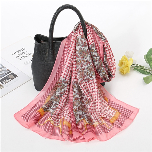 [快速出貨] 繽紛千鳥格紋腰果印花47X150雪紡紗圍巾 6色任選*Sukie* |