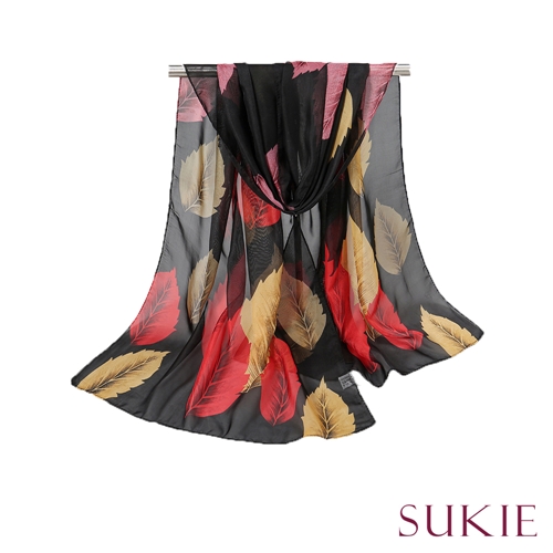 [快速出貨] 撞色秋天落葉印花50X150雪紡紗圍巾 5色任選*Sukie* |