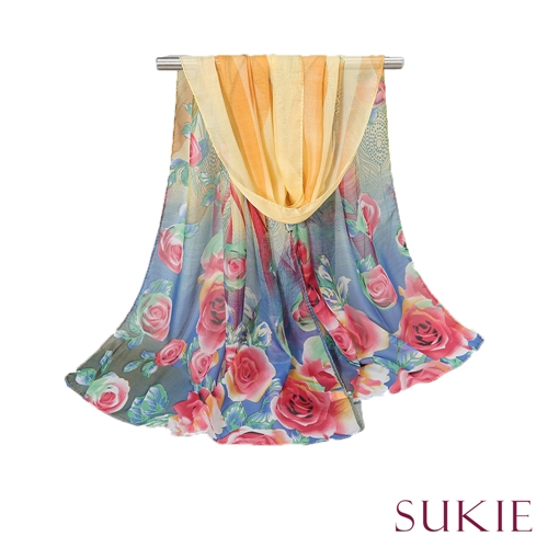 [快速出貨] 浪漫優雅玫瑰印花50X150雪紡紗圍巾 8色任選*Sukie* |
