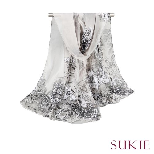 [快速出貨] 典雅牡丹印花50X150雪紡紗圍巾 5色任選*Sukie* |