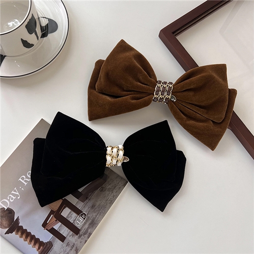 [快速出貨] 優雅金屬皮革鍊帶絲絨大蝴蝶結髮夾 2色任選*INES* |