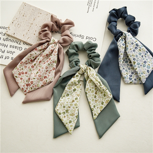[快速出貨] 田園碎花雙層蝴蝶結飄帶大腸圈 髮圈 4色任選*INES* |