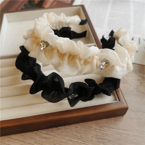 [快速出貨] 泡泡皺褶紗愛心貼鑽氣質髮箍 2色任選*MISS KOREA* |