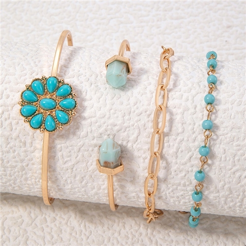 [快速出貨] 仿綠松石鑲嵌花朵手環手鍊4件套組*I MISS U* |