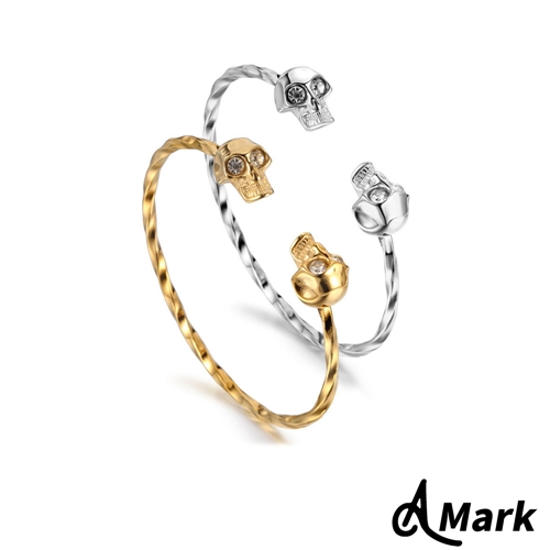 [快速出貨] 閃鑽骷髏頭扭轉線條鈦鋼手環 手鐲 2色任選*A MARK* |