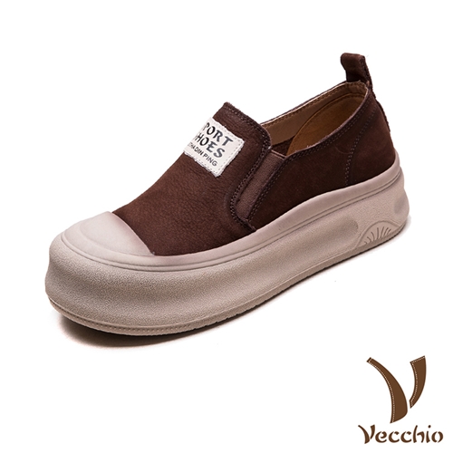 真皮復古翻絨牛皮個性厚底樂福鞋 咖*VECCHIO* |