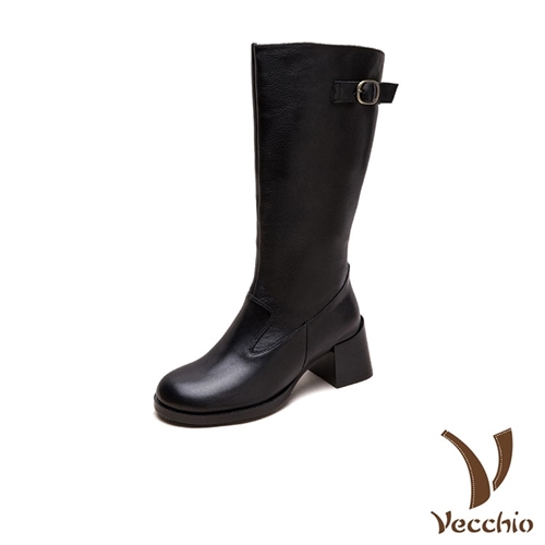全真皮頭層牛皮修飾顯瘦版型粗跟長靴 黑*VECCHIO* |
