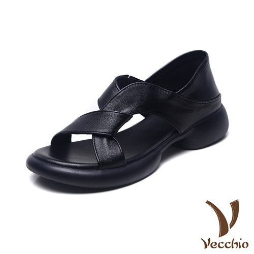 真皮頭層牛皮兩穿法曲線縷空厚底涼鞋 拖鞋 黑*VECCHIO* |