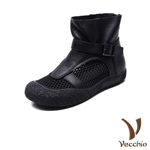 全真皮頭層牛皮縷空網布厚底羅馬涼鞋 涼靴 黑*VECCHIO* |