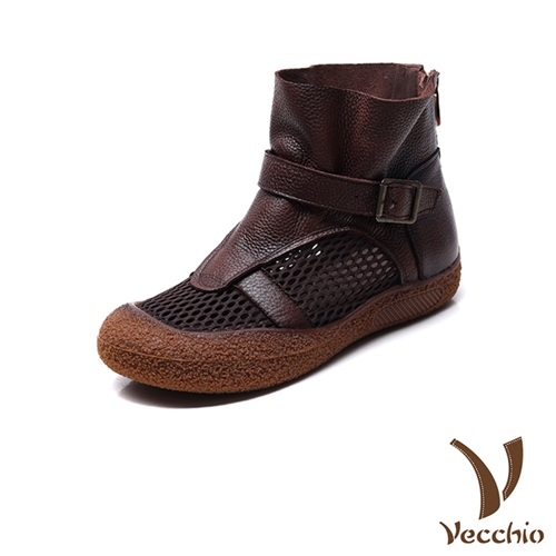 全真皮頭層牛皮縷空網布厚底羅馬涼鞋 涼靴 咖*VECCHIO* |