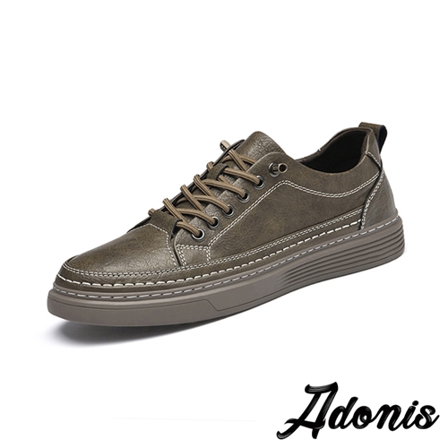 真皮潮流個性車線百搭厚底休閒鞋 板鞋 卡其*Adonis* |