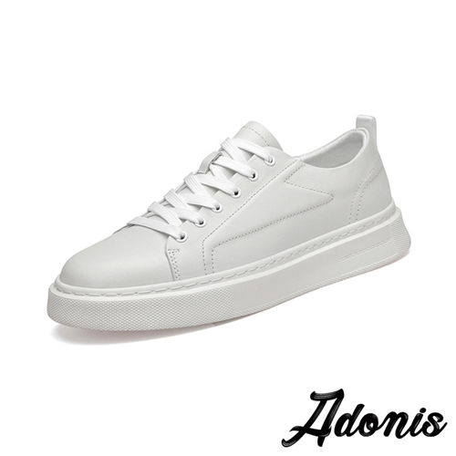 真皮頭層牛皮時尚流線車線厚底休閒鞋 板鞋 白*Adonis* |