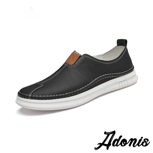 全真皮頭層牛皮時尚拼接休閒樂福鞋 黑*Adonis* |