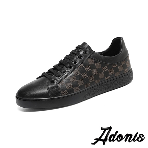 全真皮頭層牛皮經典格子設計厚底休閒板鞋 黑*Adonis* |