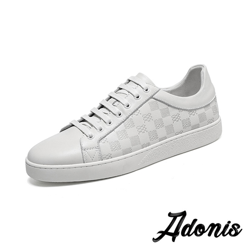 全真皮頭層牛皮經典格子設計厚底休閒板鞋 白*Adonis* |