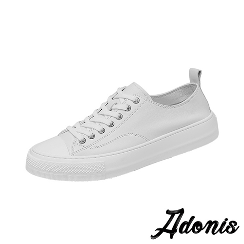 全真皮頭層牛皮純色拼接百搭休閒厚底鞋 板鞋 白*Adonis* |
