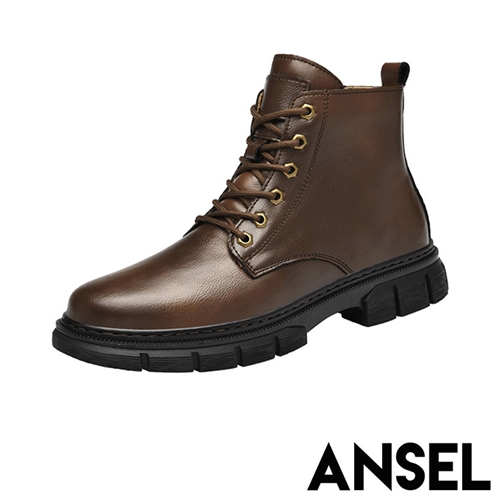 真皮時尚經典6孔繫帶百搭馬丁靴 棕*ANSEL* |