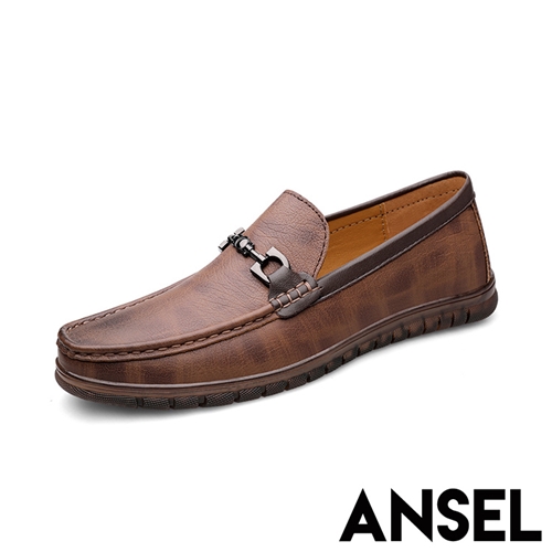 真皮頭層牛皮百搭復古馬銜釦飾經典樂福鞋 棕*ANSEL* |