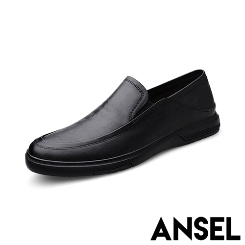 真皮頭層牛皮純色經典休閒商務皮鞋 樂福鞋 黑*ANSEL* |